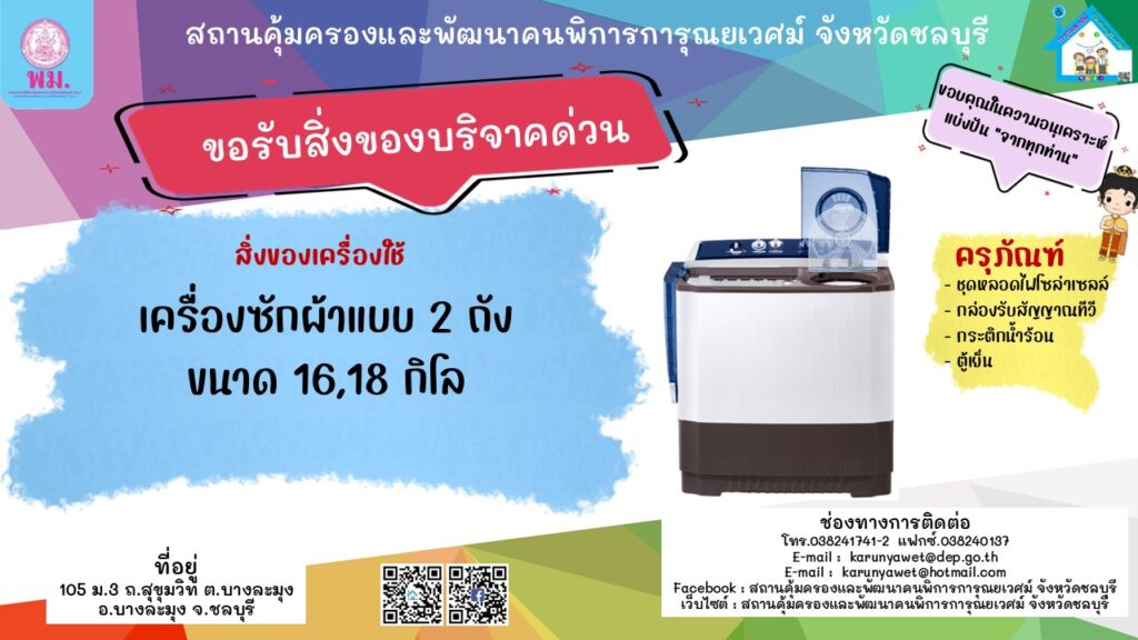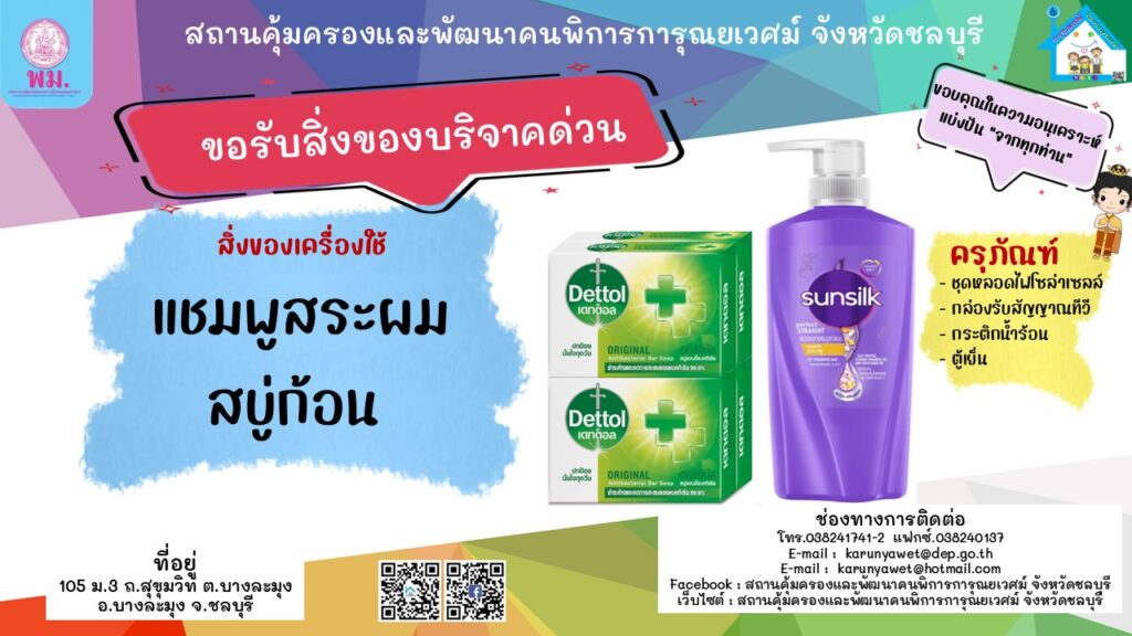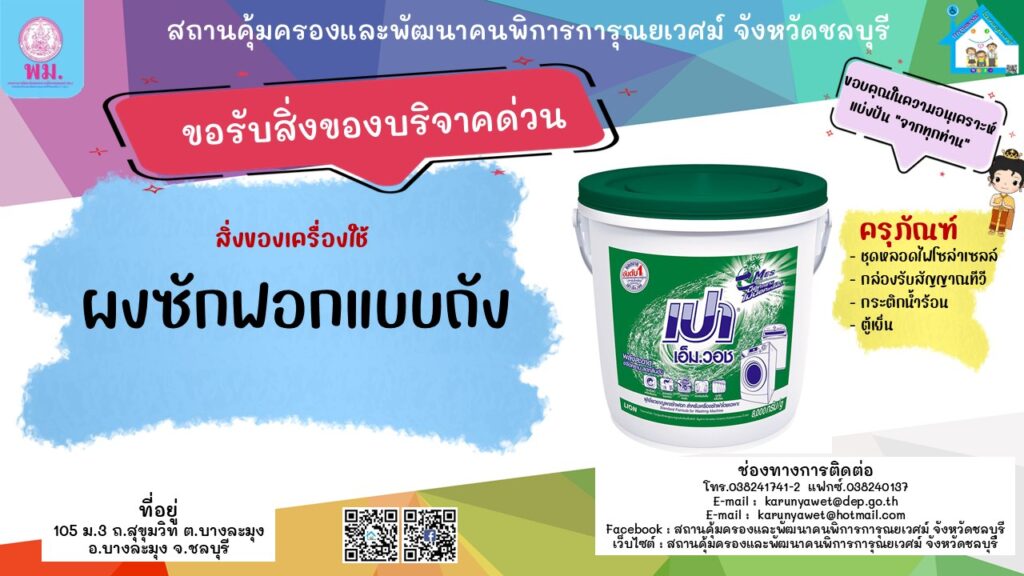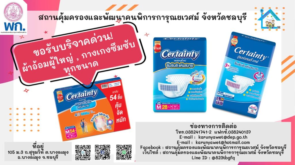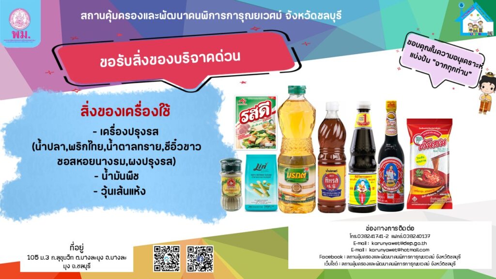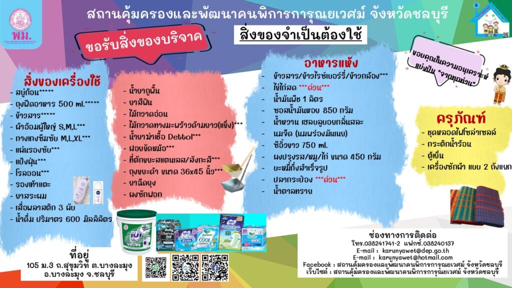 ท่านสามารถบริจาคเงินและสิ่งของได้โดยตรงที่สถานคุ้มครองและพัฒนาคนพิการการุณยเวศม์ จังหวัดชลบุรี